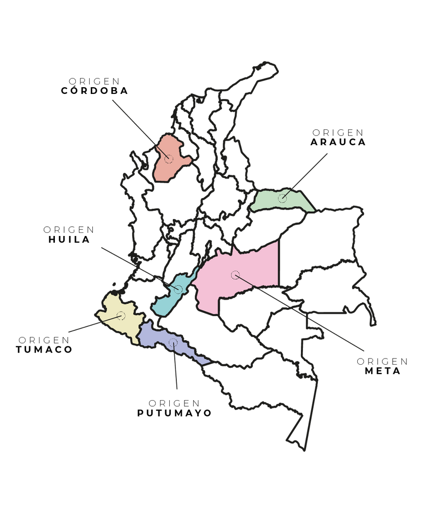 Hogar de la majestuosa "Sierra Nevada del Cocuy", la región de Arauca es un santuario de flora y fauna caracterizado por sus grandes llanuras. En esta región, las llanuras aluviales y los fértiles piedemontes de los Andes se funden en paisajes montañosos atravesados por los ríos Arauca, Meta y Casanare. Al compás de la música "joropo", en la tierra de los vaqueros y las sabanas verdes, cuidadosamente buscamos los mejores granos de cacao para estas barras de chocolate.