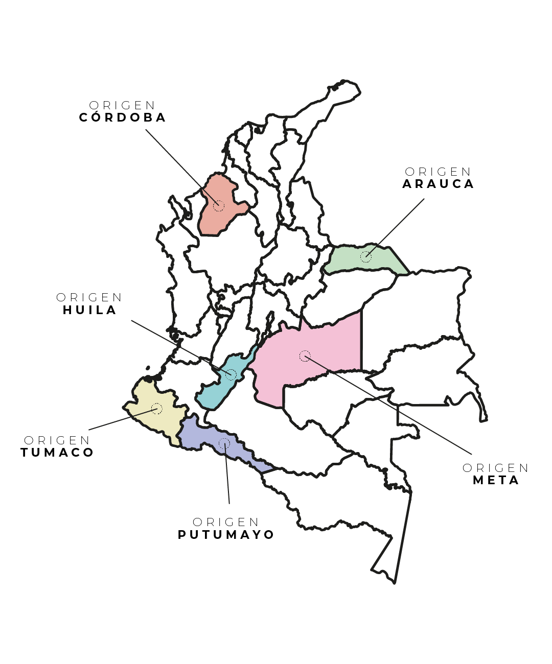 De este suelo generoso, bañado por la brisa marina y el sol tropical, emergen granos de cacao que capturan la esencia misma de Córdoba: intensos, con notas de nuez y miel, y un sutil toque a frutas tropicales. Es un reflejo del alma de la región, profundo y rico, como un homenaje a su herencia y su conexión con la tierra.